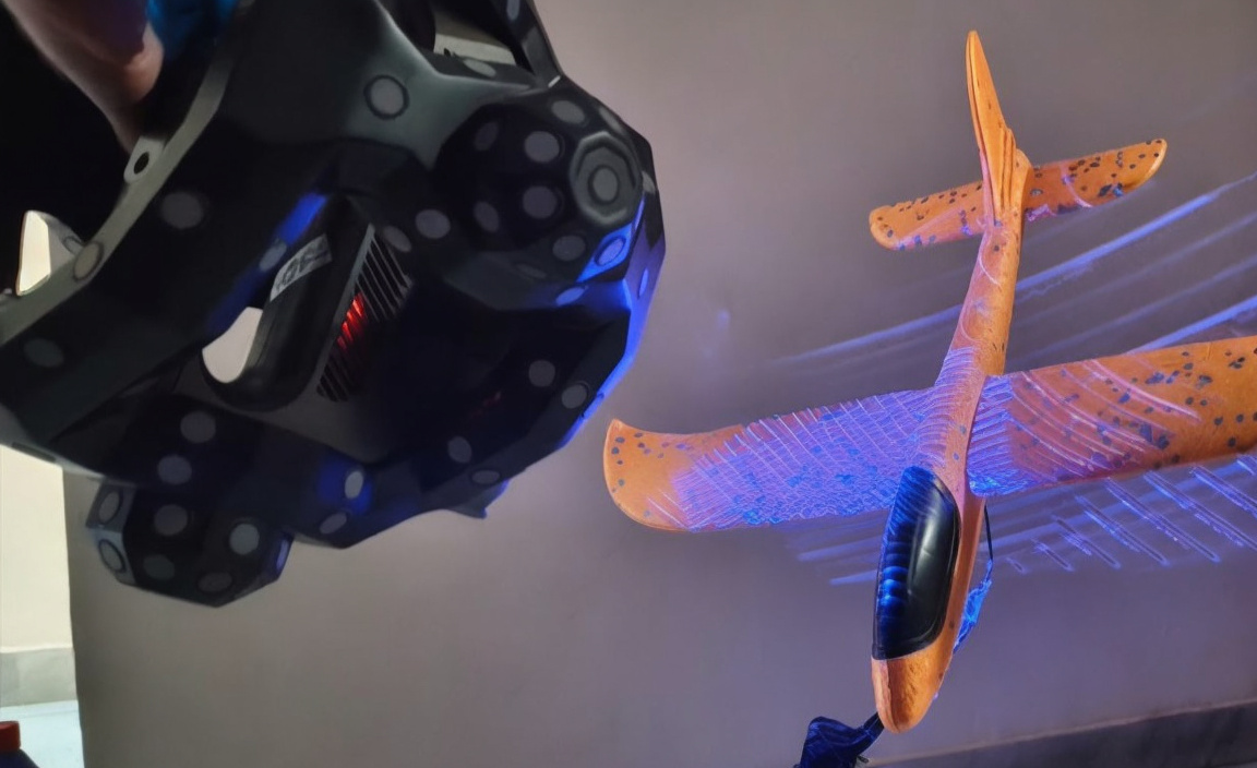 For this check, I bought a colourful foam glider with a wingspan of round 60cm. I figured that the froth could be straightforward to scan, and it might be an excellent coloration check of a bigger object. The glider additionally has a cockpit cover product of black plastic, which is someplace between shiny and matte. So the addition of this black mildly reflective element could be an excellent check to see if a sprig was wanted.