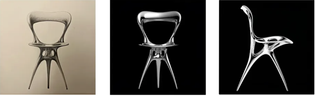 After the AI-generated ideas have been accepted, Gemini was used to discover supplies and visualize the chair from a number of views. The digital sketches have been then translated right into a bodily chair utilizing steel 3D printing, producing a practical object that preserves the natural, fluid varieties central to Lovegrove’s aesthetic.